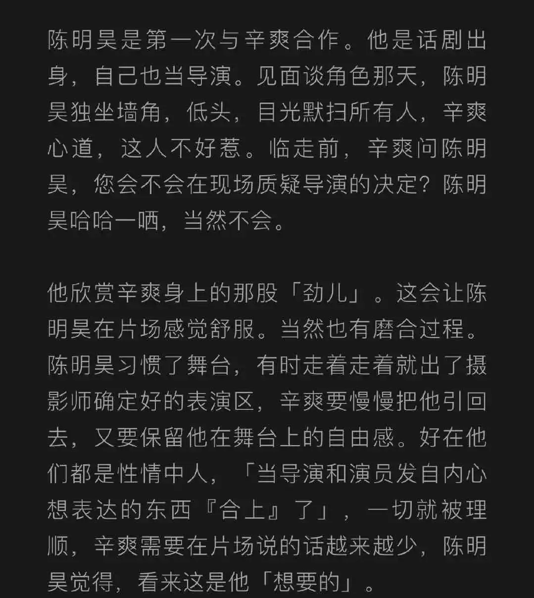 辛爽导演从来不做“注意看我要说立意了”的事,但和他共鸣到是那么自然的。在某场人物对话的空隙里,也许就是一瞬留白,你突然鼻头一酸,叹一口气。这是细品之后的巨大香气,几乎所有角色身上,都有这样斑斓的滋味。
