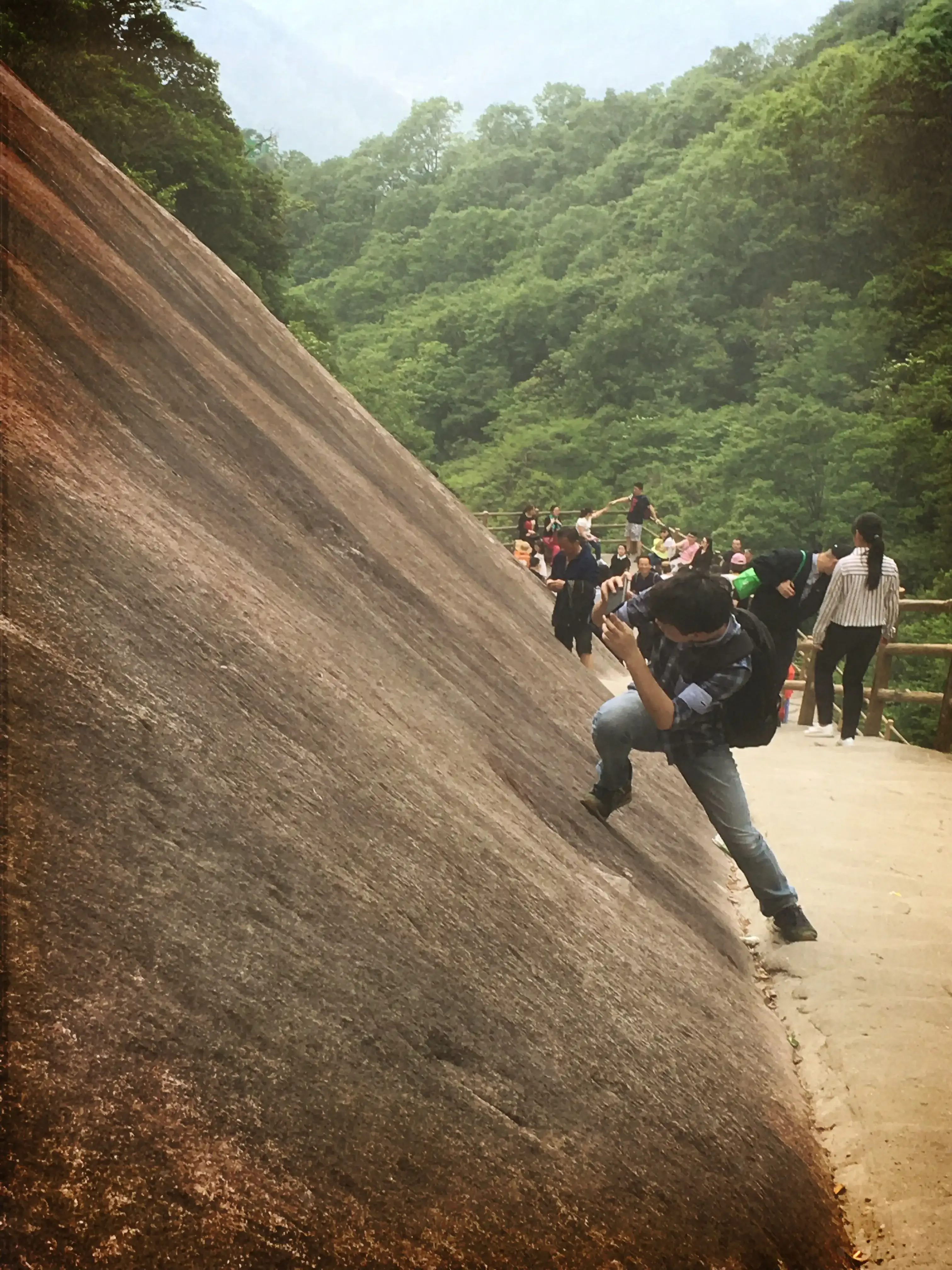 早上从傅家坡坐车直达景区,方便得很,也不远,我想睡一觉差不多就到了。山间风景见得也挺多的,这次就不多说了。比风景有意思的是身边的小伙伴。我想对他来说这一路是极其漫长的。他告诉我,在和女友谈恋爱之前,他们是互怼的好朋友,但现在确认了关系后就变得有点矜持,不像原来那样无话不谈了。猜得没错的话,从上车开始他就惦记着自家女友,一路上若是没收到女友的回复,准没心情看窗外的风景,真是“身在曹营心在汉”(偷笑)。