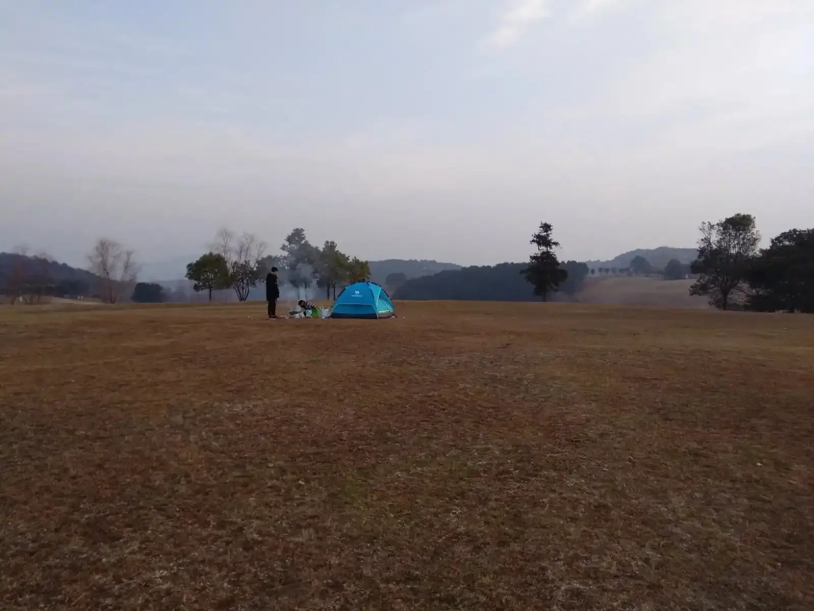 昨晚,我们一直听见有电锯的声音,怀疑着是不是"电锯惊魂"里的人出现了,再加上在帐篷里看恐怖片,一晚上神经兮兮的,没睡的安稳。
