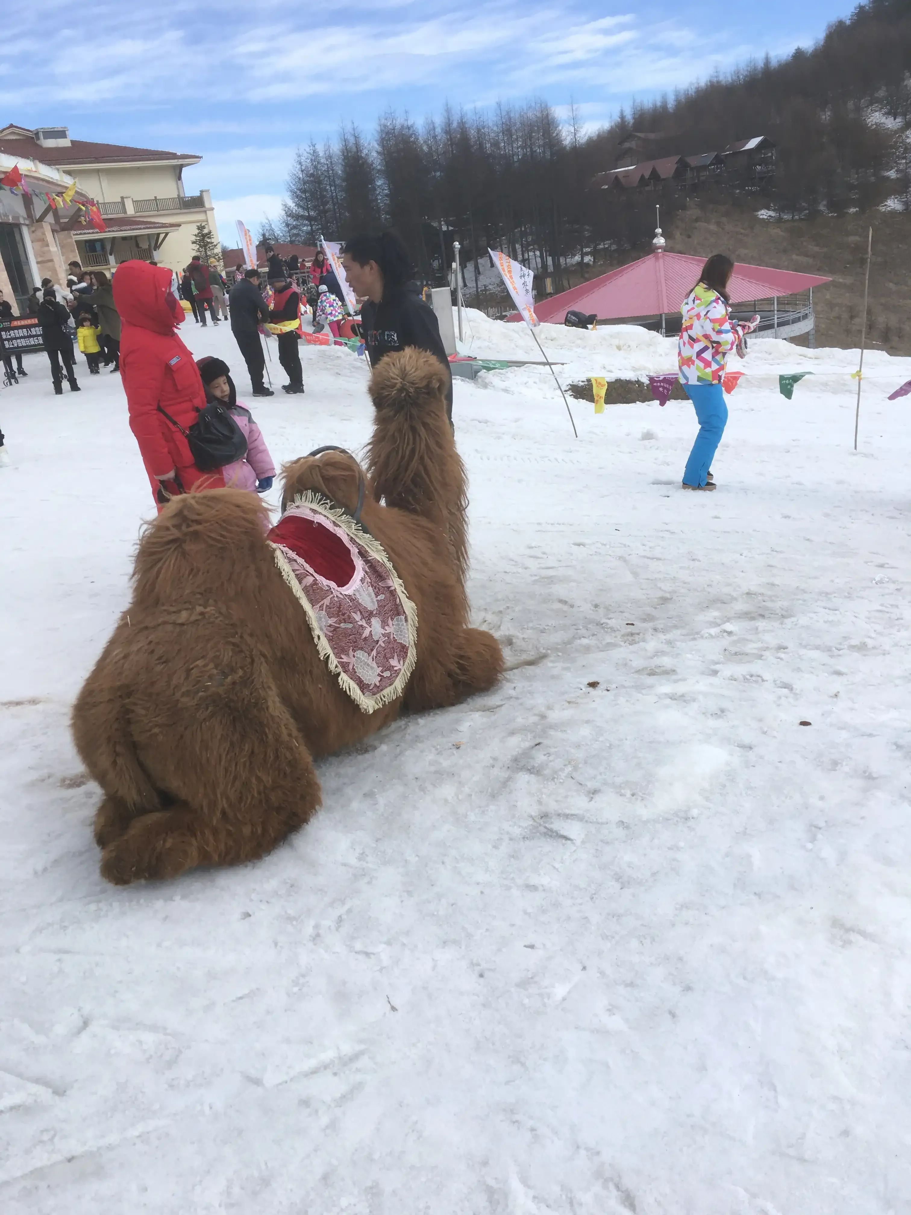 第二天一早,我们就穿上滑雪服、戴上滑雪镜,向国际滑雪场出发啦……