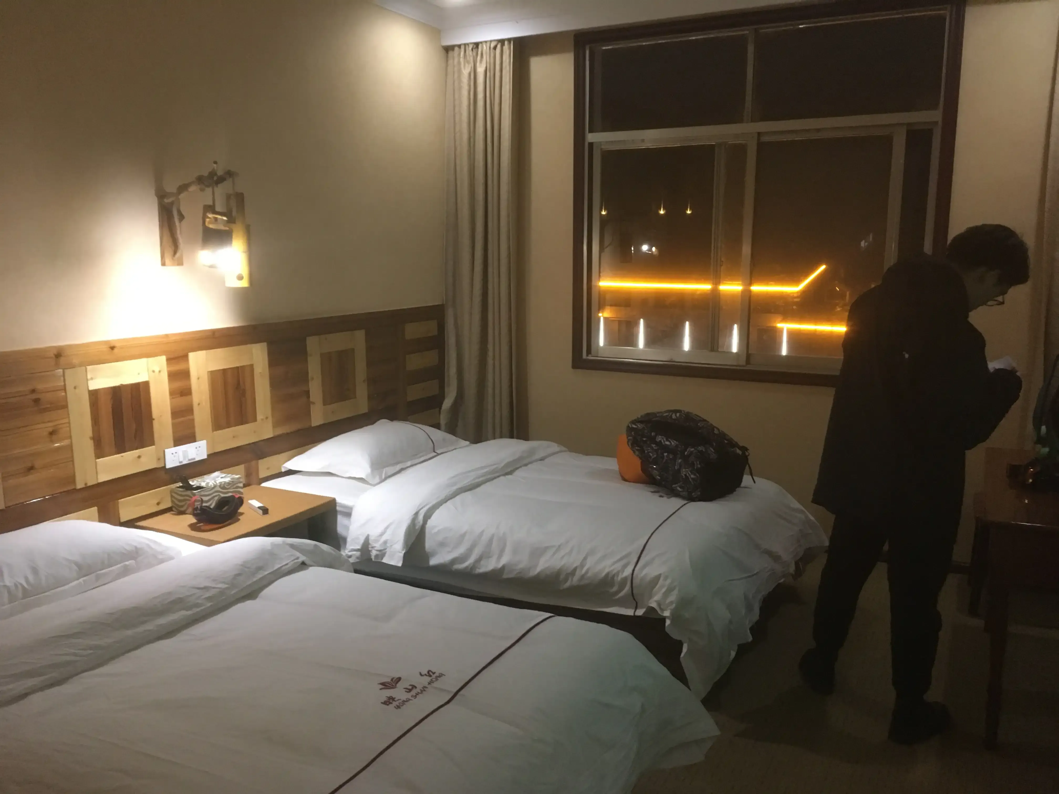 期间还发生了一件趣事:我们进宾馆大门时,导游说这是4楼。我心想这是怎么回事,明明进去的是一楼啊。后来住进去才知道,原来这是一家建在悬崖边上的旅馆——我们在山上,而“一楼”其实是在山下。还是第一次体验这种旅馆,未预料到的惊喜总是让人怦然心动,真是很不错的一家旅馆呢。