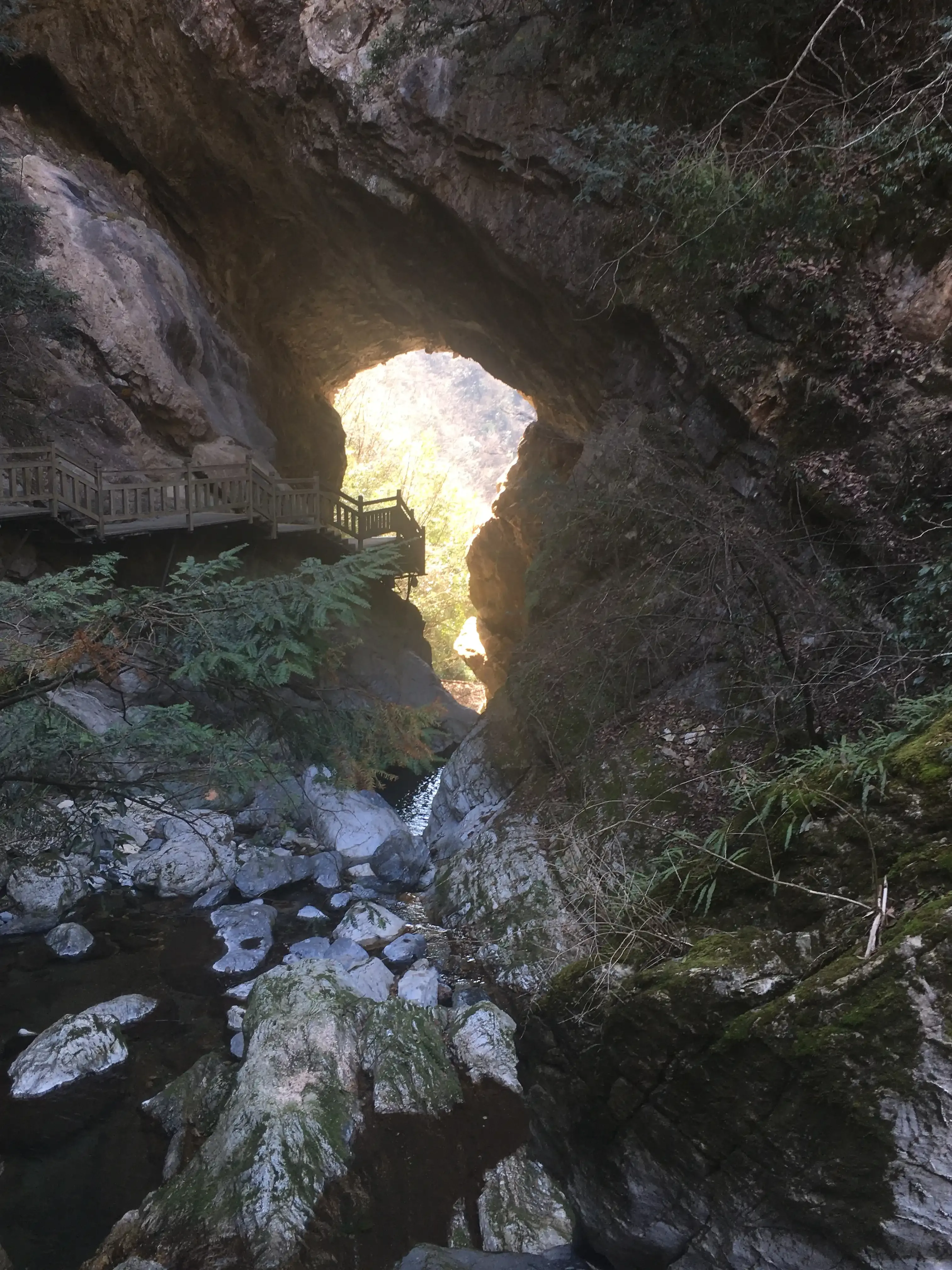 官门山进去以后还要走7公里的山路,是一座人造与天然结合的博物馆。在这三个景区里,我更中意天生桥——从香溪源流来的泉水在这里洒落,清澈无比,越往深处走,越能感受到“鸟鸣山更幽”的清净。