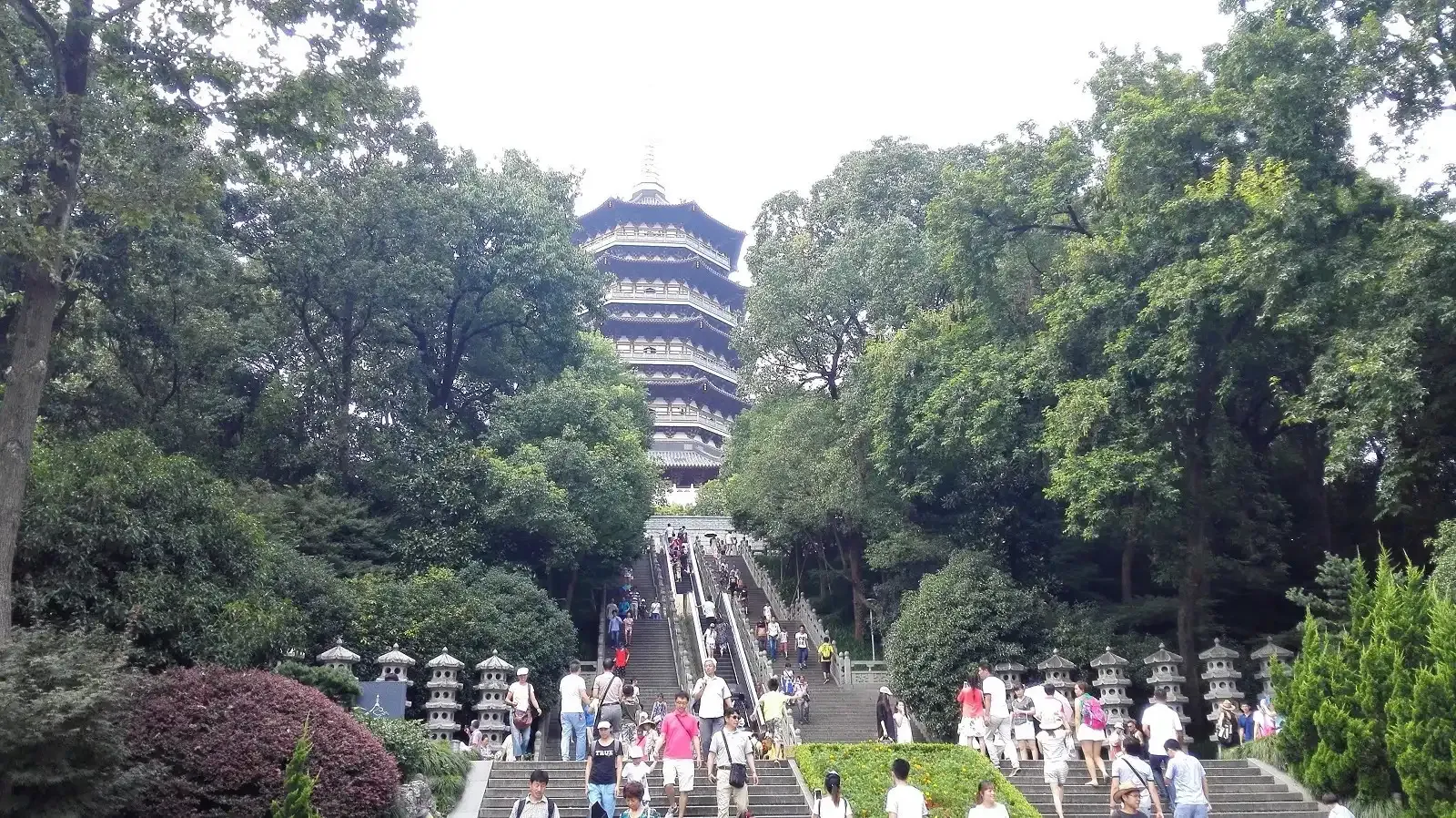 来到了雷峰塔前,大家是否记得白蛇传呢,文弱的书生与蛇妖的恋爱,还有这无情的法海,都在这雷峰塔中。