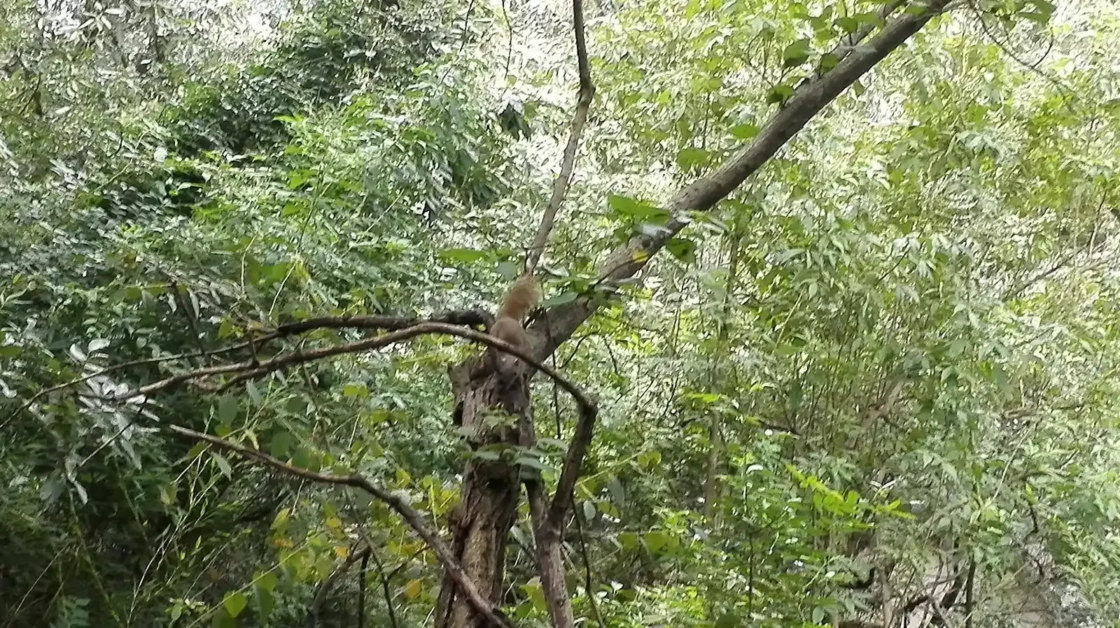 以前的人说上山不累下山累,放在以前这句话是对的,可现在山路都修好了,下山是很轻松的,我是边玩溜溜球边下的山,其间看到树上有什么东西在动,我细细一看,是个松鼠,运气真好,它看见我并没有马上逃走,而是与我对视,看它竟不怕,我就满足一下它,给它拍个照做个留恋吧。