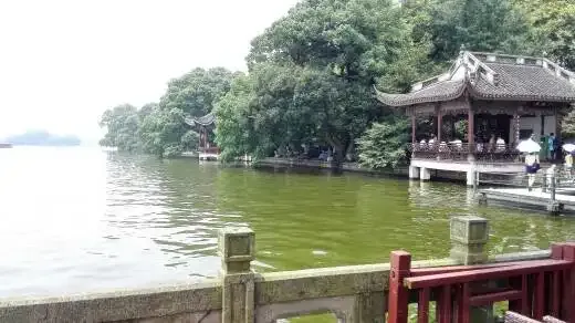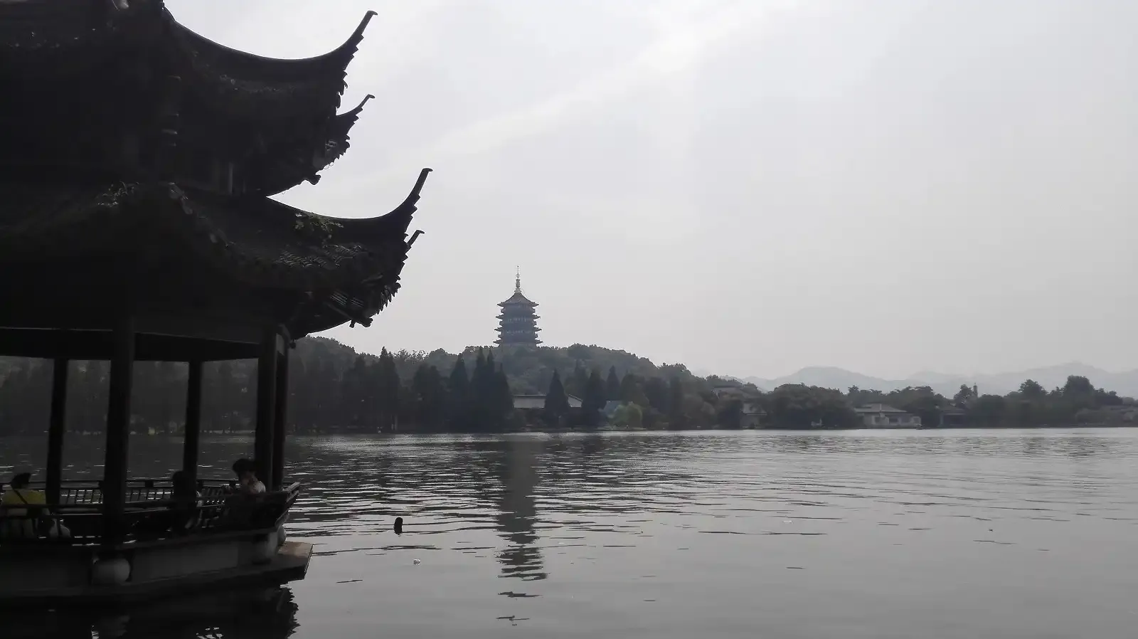 看看这是哪里,世界闻名的西湖耶,我现在就站在它身旁。