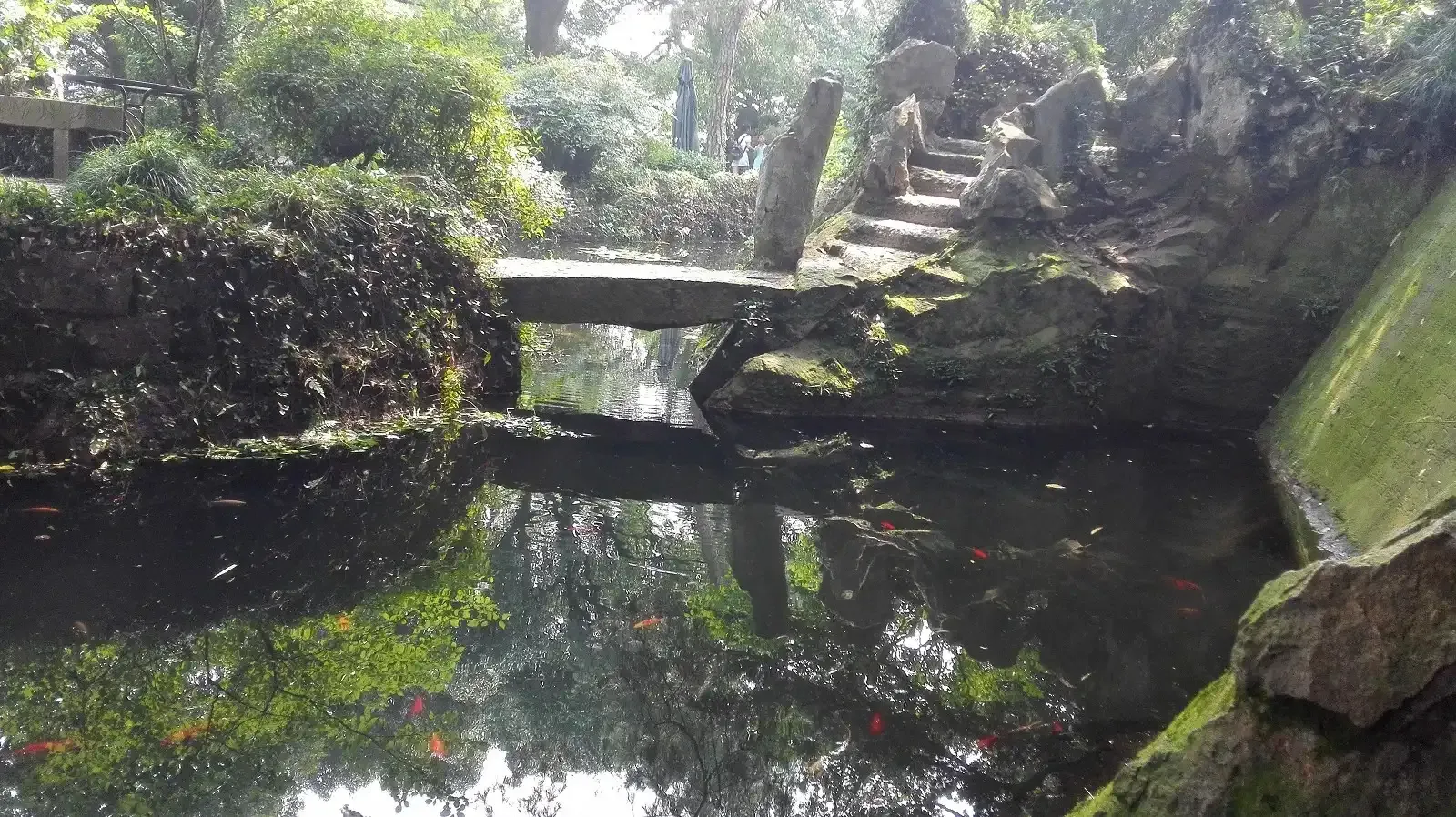 往更深处走,人就变得比较稀少,中间修有一座小亭,正好让我憩息一会,很是舒坦!